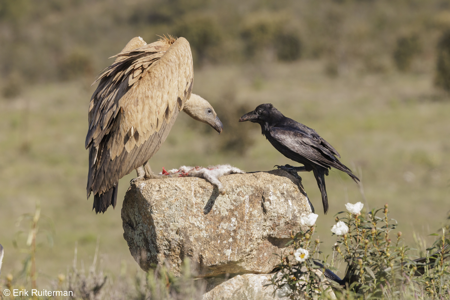 Vale gier en raaf | Eurasian griffon vulture and Common raven Vale gier en raaf | Eurasian griffon vulture and Common raven